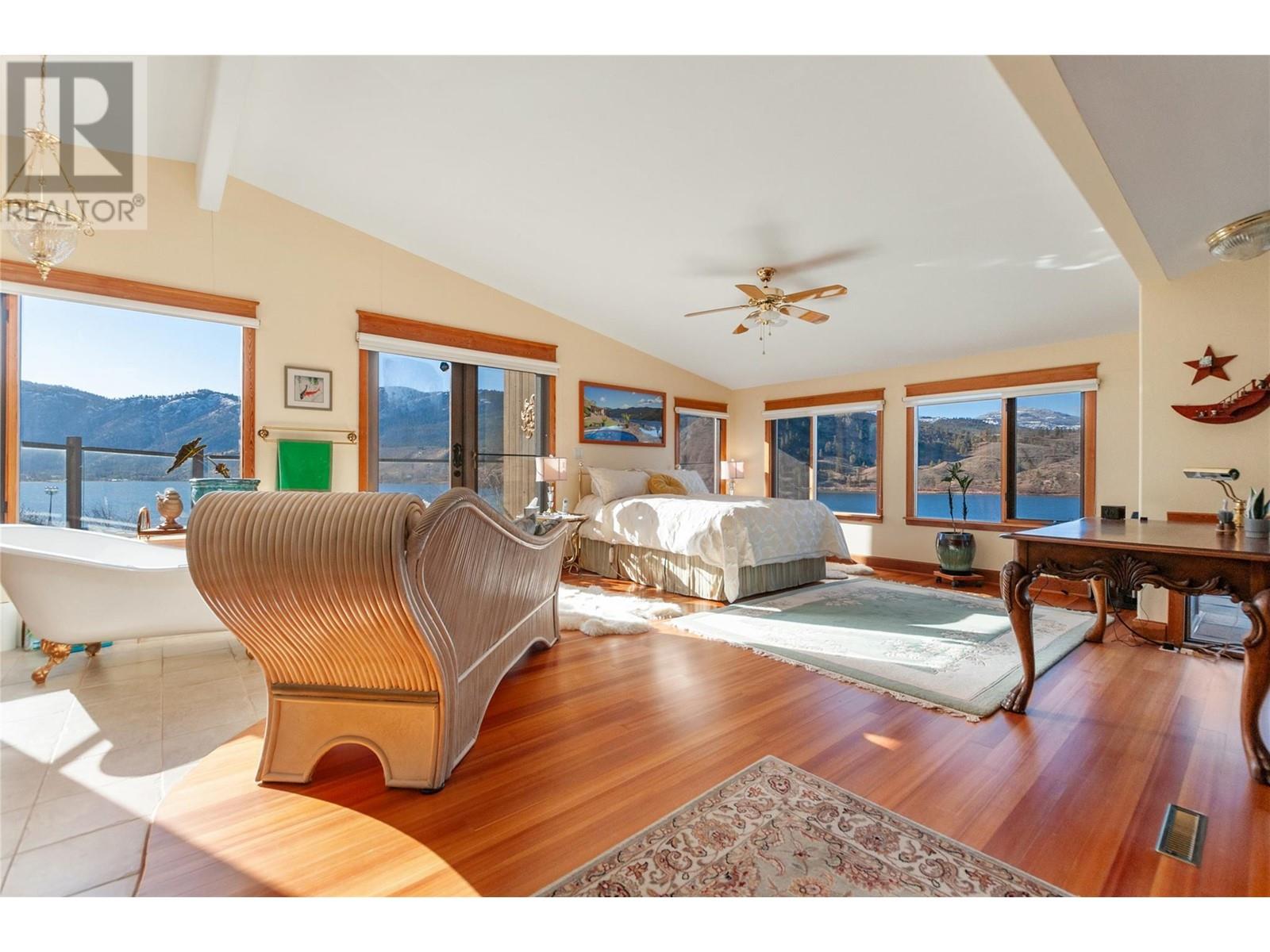 Enter through the private hand-crafted wrought iron gate you'll immediately be wowed by the home's unique charm and inviting atmosphere. The tastefully renovated home seamlessly flows into an exceptional views of Skaha Lake featuring the wonderful sunsets over the neighbouring hills. Outside you can marvel at the rock features that border an inviting in ground pool or take a stroll to the road leading down to over 550 ft of lakeshore. Inside the Ron Thom’s architecture features an award winning design tastefully updated incorporating many unique features including copper framed windows and doors, hand-crafted copper stair railing, native eagle motif skylight, ceramic tile throughout, expansive use of glass and over 2100 sq/ft of deck. The primary bedroom with a den area offers versatility for a home office or cozy reading nook. The updated lower level is a treasure, featuring a closed breezeway with a walk in fridge - endless possibilities here! Ample space for RV parking or additional vehicles. Privately located with the perfect proximity to restaurants, shops, schools, and beautiful Skaha lake. This property is not just a house; it's an investment in a lifestyle that effortlessly combines the charm of the past with the comforts of today. Call today to arrange private viewing. (id:4069)