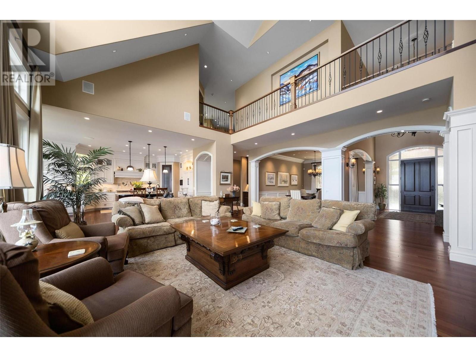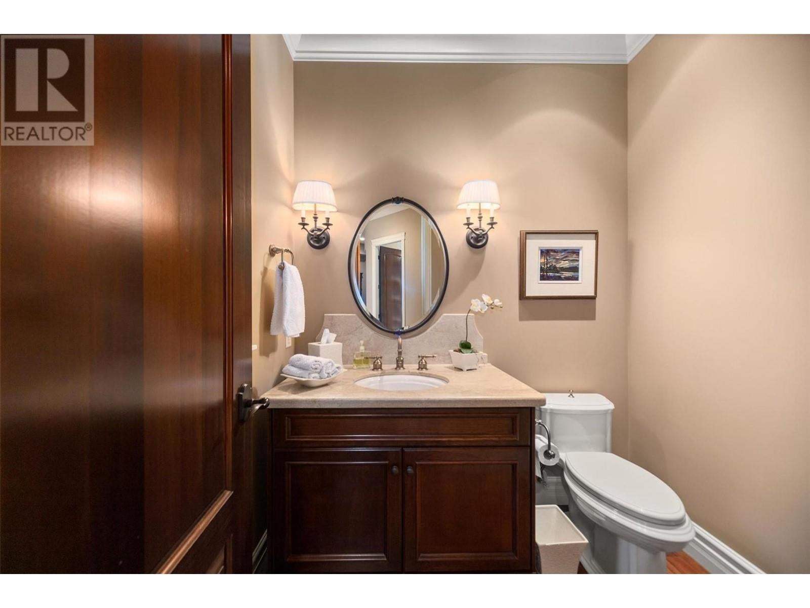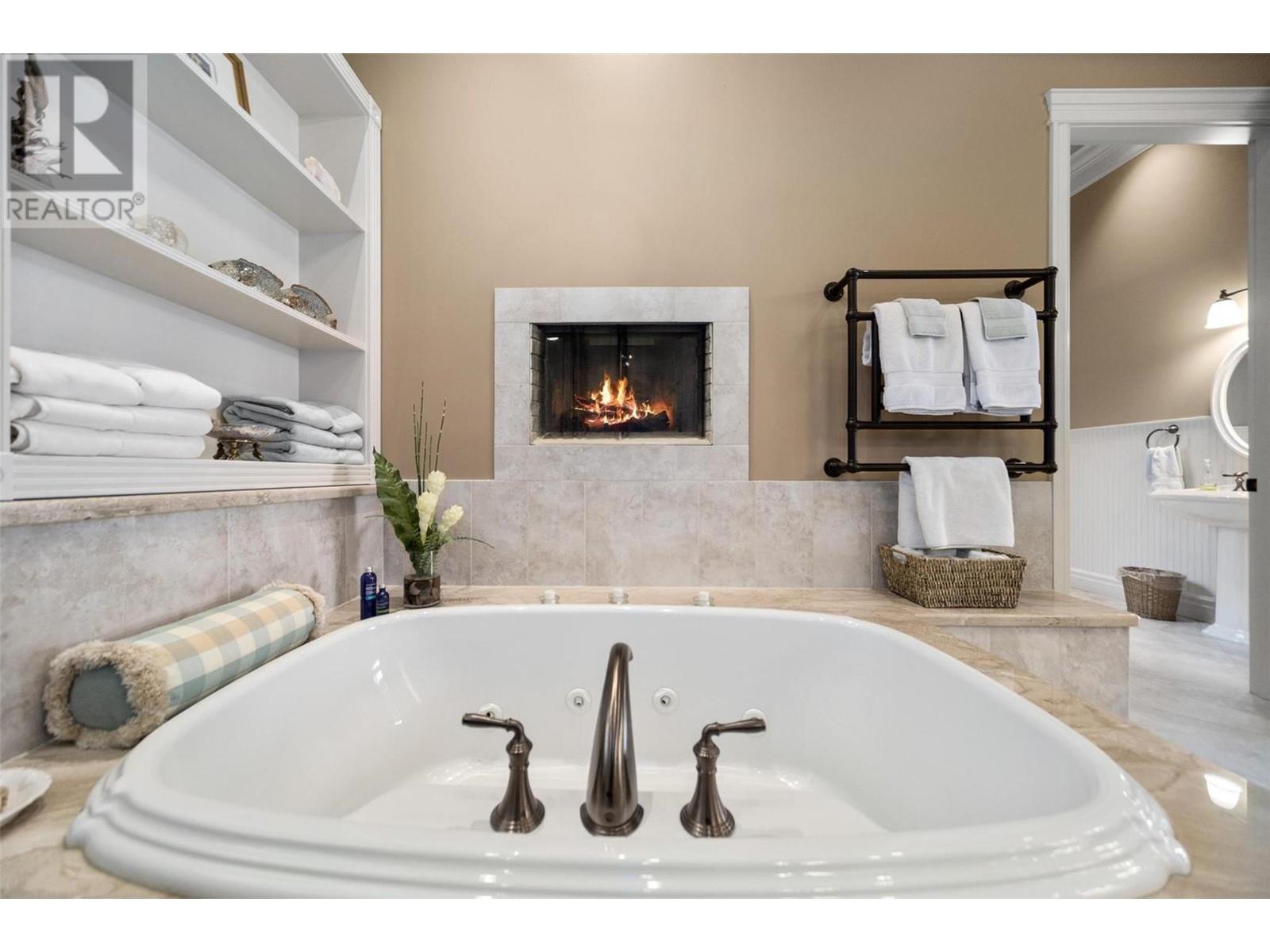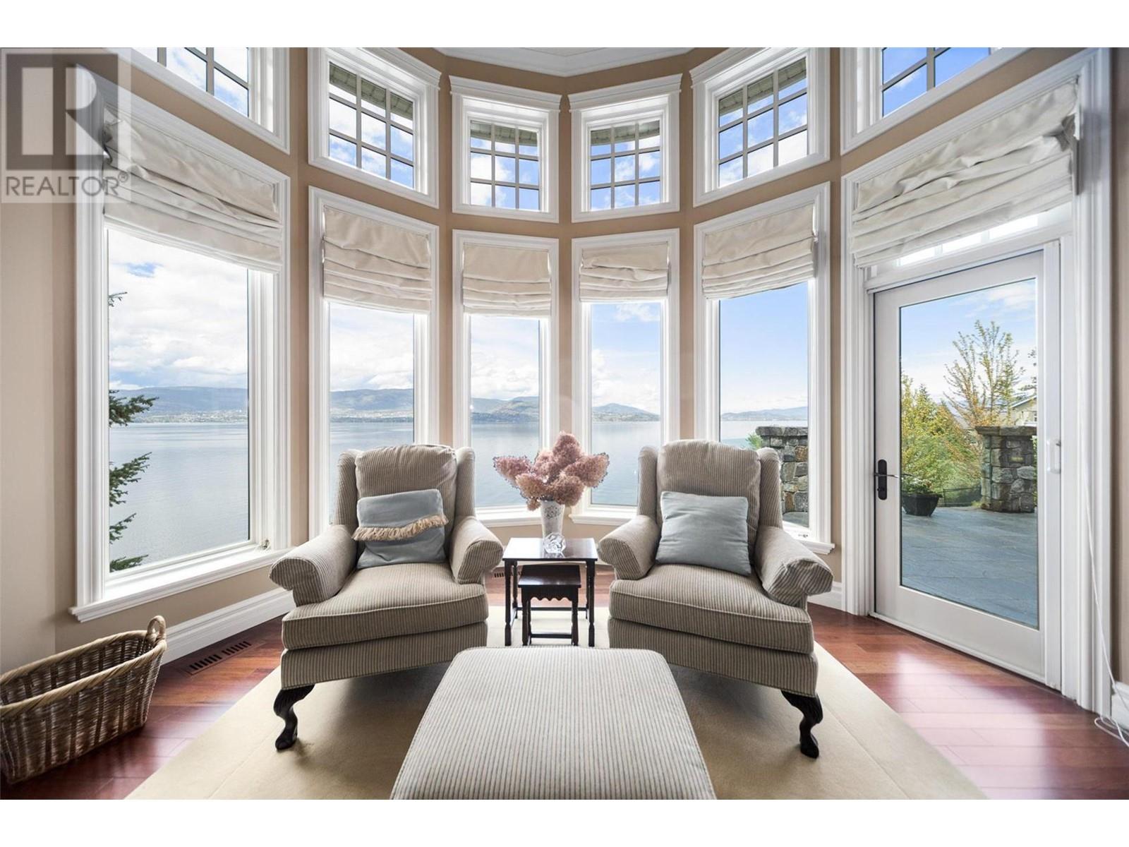 Lakefront vineyard estate home on 2.31 private acres w/160’ of sandy beach. State of the art geothermal heating/cooling and green living eco septic system. European chateau inspired boasts a new dock, elevator, wine cellar, private vineyard, office, gym + theatre. 8000 sq ft, 5 bdrm, 8 bath. Main floor primary suite w/ reading area + fireplace, luxury hotel like bath, great room w/soaring ceilings, stone fireplace and French doors that lead out to a lakefront patio w/ sunset views. The chateau kitchen w/ best in class Wolf/SubZero appliances, lakeview kitchen table along w/bar seating, formal dining room, main floor laundry and a wet bar round. The upper level w/2 large bdrms w/ensuites and huge family/guest suite w/ensuite, laundry, kitchenette. The lower level has a gym +spa bath, wine cellar, games rm, theatre, sauna, family rm and a large office w/ensuite. Elevator + accessible ramps. 4 car garage plus bonus storage. Explore your options to add a guest house. Outdoor kitchen/hot tub. Licenced dock w/power lift. Htd tile floors, Pella windows, state of the art water filtration/controls, htd driveway. Smart Lutron system w/power blinds, custom lighting, audio, alarm. Timeless design w/ tile roof, copper gutters and Kettle Valley stone exterior. A relaxing waterfall entrance. Private vineyard w/90 Chardonnay vines with room to expand vineyard. Mins to the award winning Cedar Creek + Martins Lake wineries, Bertram Park and the amenities of Lower Mission. Room for pool. (id:4069)